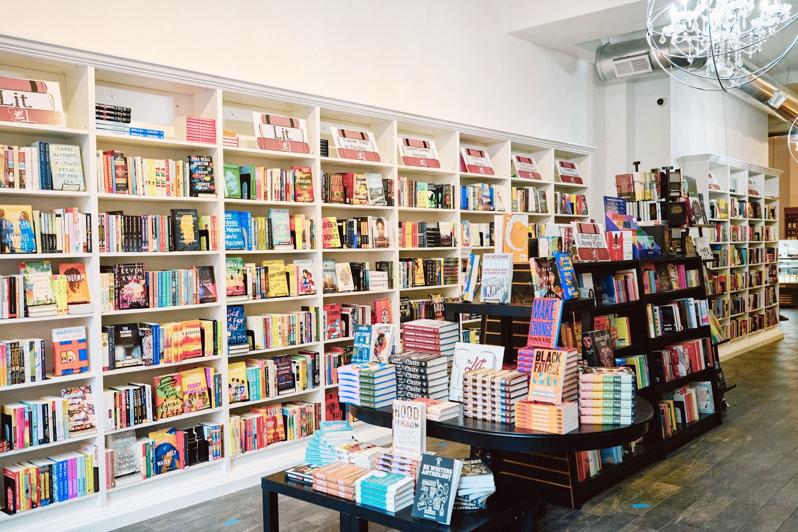 Полички книгарні розповідають про ідеї засновниці. Вона створила окремі тематичні секції: «Чорношкірі жінки та фемінізм», «Хіп-хоп — це теж поезія», а серед класики поставила поруч Шекспіра, Ґабріеля Ґарсію Маркеса й Сандру Сіснерос. На вітринах помітні книги про афроамериканську та латиноамериканську культуру, а в дитячому відділі кожна обкладинка відображає різноманіття — діти різного кольору шкіри бачать себе у книжкових героях.